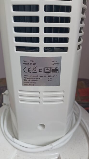 Pogodan za osvežavanje prostora kao što su dnevne sobe, spavaće sobe ili kancelarije, uz tih rad i uštedu energije zahvaljujući snazi od 45 W. Kompaktan dizajn lako se uklapa u uglove i pored nameštaja. Made in P.R.C., uvoznik Adriaanse Import & Export B.V., Eindhoven, Holandija. Batch: 2075883.
