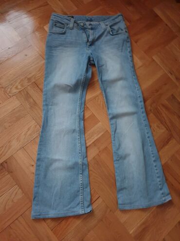 Ženske farmerke – tamno plavi denim - Klasčan kroj ravne nogavice, srednji struk - Tamno plava ispirana nijansa sa blagim izbledelim efektom - Pet džepova (dva napred + mali kovanica džep, dva poz...