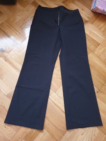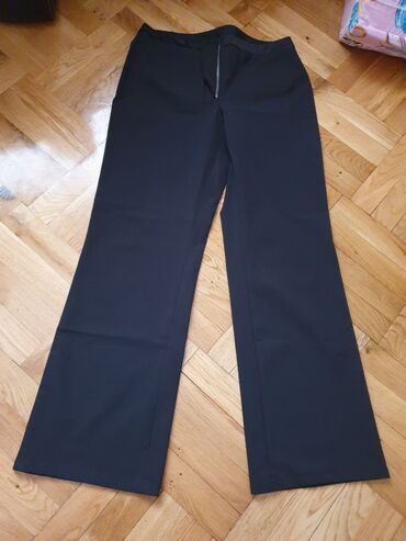 Pantalone, nove sa etiketom, crne sa belim pojasom, pojas na gumu i uckur, siroke nogavice, divno padaju. Fantasticne, idealno se kombinuju za elegantnu i kezual varijantu, na sandale, cipele, pati...