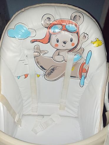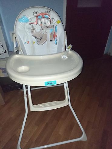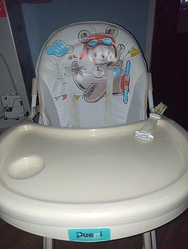 Praktična i funkcionalna stolica za bezbrižno hranjenje i igru. Marke Pueri (oznaka na prednjoj strani tacne). Boja: bež/krema sa šarenim detaljima.Novo, nekorišćeno.
