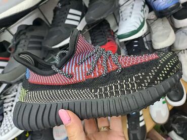 - Crna osnova sa crvenim, plavim i žutim akcentima; crni đon