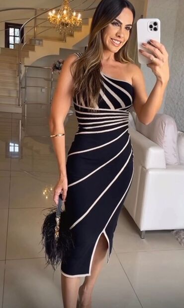 - Kroj: pripijena silueta sa visokim strukom, midi dužina do ispod kolena