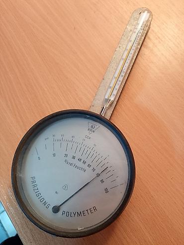 Napomena: Instrument je u suštini ispravan. Nedostaju limeni držači termometra, koji su usled dugog stajanja otpali. Trenutno je termometar pričvršćen selotejpom i može se i tako koristiti. Takođe je potrebno i laboratorijsko podešavanje higrometra, jer je sada laički podešen.