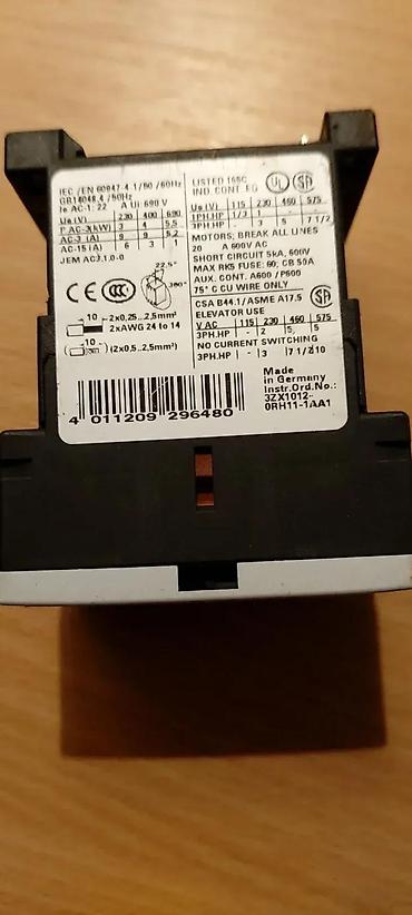 SIEMENS KONTAKTOR 3RT1016-2AP01 220VAC | SIEMENS kontaktor 3RT1016-2AP01 220VAC, demontiran sa rashodovane mašine, polovan, proveren i ispravan. Napomena: Na ovaj artikal nema reklamacije. Tehničke karakteristike: - Proizvođač: SIEMENS- Kontakti: 3 noseća i jedan NO- Opterećenje kontakata: 9A. - Moguć priključak potrošača: 4kW. - Primena: -20 do 60℃- Montaža: Na DIN šinu 35mm. ili na četiri vijka M4. - Priključak: Provodnicima do 2,5mm² - Dimenzije: Širina: 45mm Visina: 61mm. Dubina: 73mm.