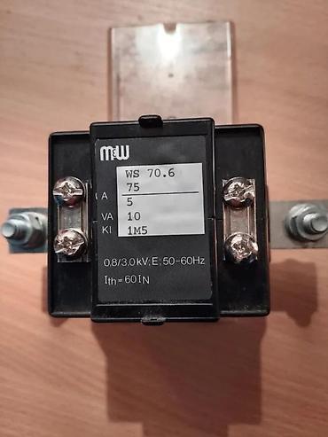 Strujni transformator WS 70.6 75/5A 10VA. Strujni transformator M&W Germany, WS 70.6 A, 10VA, kl.1M5 za fiksnu montažu u orman sa ostalim elementima. ✨ Montira se na četiri fiksna držača za vijke od 6mm. Osni razmak vijaka je: po visini: 80mm a po širini: 50mm. Ožičenje se vrši provodnicima koji se povezuju: Na kontakte K i L kablovskim papučicama sa otvorom rupe od 8mm, dok se provodnici za kontakte k i l povezuju kablovskim papučicama sa rupom od 5mm. Ima mogućnost da se blombira. Transformator je polovan, ispravan, demontira sa rashodovane mašine. Nema vidljivih oštećenja, sem manje ogrebotine na providnom poklopcu za blombiranje. Prodaje se ovakav kako vidite na slikama. Napomena: Na ovajartikal nema reklamacije.