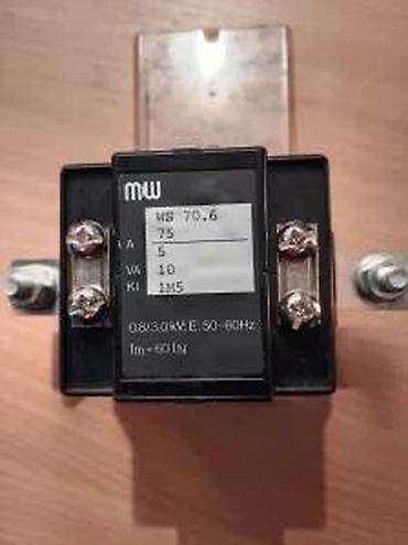 Strujni transformator WS 70.6 75/5A 10VA. Strujni transformator M&W Germany, WS 70.6 A, 10VA, kl.1M5 za fiksnu montažu u orman sa ostalim elementima. ✨ Montira se na četiri fiksna držača za vijke od 6mm. Osni razmak vijaka je: po visini: 80mm a po širini: 50mm. Ožičenje se vrši provodnicima koji se povezuju: Na kontakte K i L kablovskim papučicama sa otvorom rupe od 8mm, dok se provodnici za kontakte k i l povezuju kablovskim papučicama sa rupom od 5mm. Ima mogućnost da se blombira. Transformator je polovan, ispravan, demontira sa rashodovane mašine. Nema vidljivih oštećenja, sem manje ogrebotine na providnom poklopcu za blombiranje. Prodaje se ovakav kako vidite na slikama. Napomena: Na ovajartikal nema reklamacije.