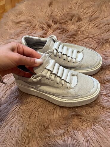Ženske patike u bež tonovima - Dizajn: moderni lifestyle model sa kombinacijom tekstila i veštačkog antilopa; perforirane pletene sekcije za prozračnost; dekorativni bočni detalji. - Đon: povišeni...
