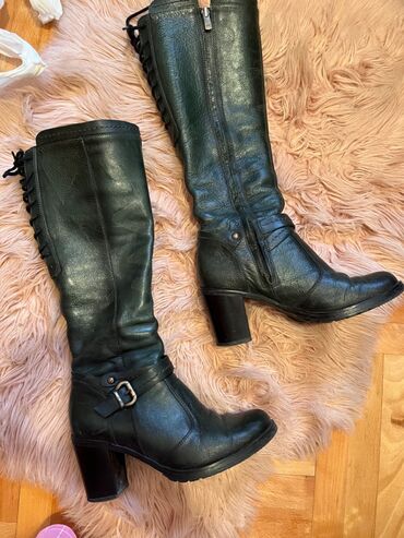 Kožne ženske čizme – broj 39 - Materijal: prava koža, glatka završnica - Boja: crna - Visoka platforma/deblji đon sa grubim profilom za stabilnost - Zatvaranje: bočni rajsferšlus za lako obuvanje ...