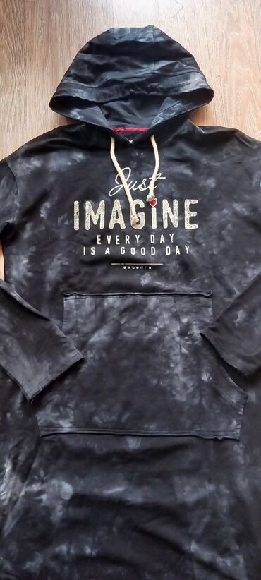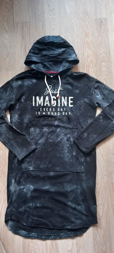 Džemper-haljina, veličina M. Tamno siva boja, dugi rukavi, drapirani