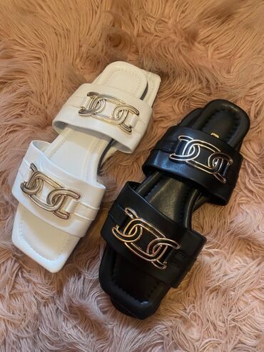 Ženske ravne papuče/sandale sa ukrasnom kopčom - Dizajn: klasične slip-on papuče sa dva/tri poprečna kaiša. - Ukras: velika centralna kopča sa sjajnim cirkonima; u jednoj varijanti okrugli prsten ...
