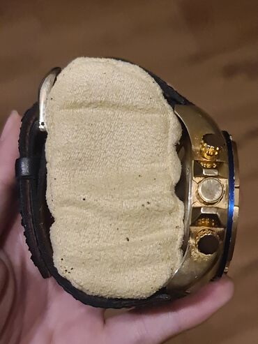 - Kućište: masivno, zlatno-tonirano nerđajuće čelično kućište sa širokim rotirajućim bezelom (minute označene 10–60), kombinacija poliranih i mat detalja.