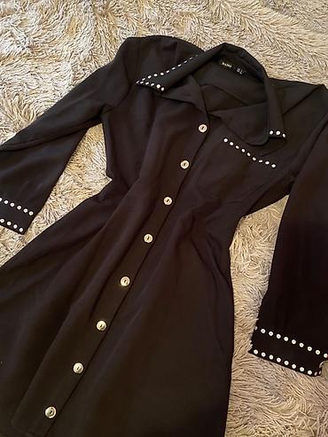 ZARA haljina sa šljokicama - Model: košulja-haljina sa kragnom i dugmadima sprijeda - Boja: crna, efekt šljokica po celoj površini - Rukavi: dugi, sa manžetnama od satenskog/sjajnog materijala - K...