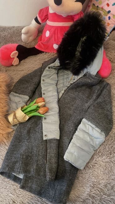 BERSHKA Sivi kratak KAPUTIĆ VEL. L