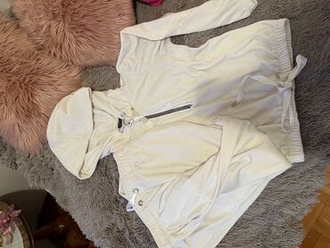 The North Face trenerka – gornji deo + donji deo - Dvodeleni komplet: jakna sa rajsferšlusom i pantalone. - Boje: gornji deo maslinasto zelen sa crnim i tamnosivim prugama na rukavima; donji deo c...