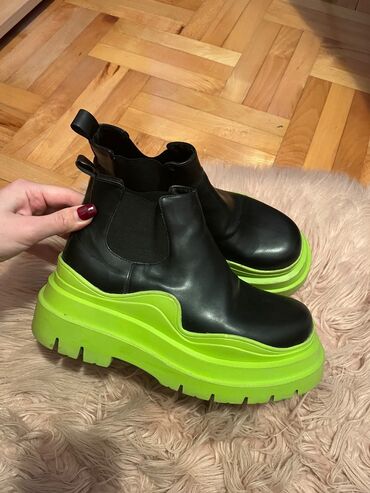 Crne kratke čizme/ankle boot model sa platformom - Materijal gornjišta: mekana brušena koža (semiš) sa elastičnim neopren/rib delom oko zgloba za lako obuvanje - Boja: potpuno crna, sa kontrastnim...