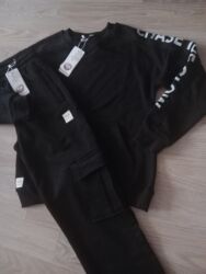 Paket oko 30 komada .Saljem snimak .Komplet dečijih dukseva i donjeg dela trenerke - Crni duks sa kapuljačom: minimalistički dizajn, diskretni print natpisa na levoj strani i štep detalji; prakti...