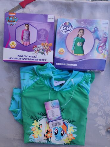 Dečije majice za plivanje sa UV zaštitom, idealne za bezbedan boravak na suncu. Dostupne u dve varijante: jedna sa motivom "Patrolne šape" i druga sa motivom "Moj mali poni". Majice su dugih rukava, pružaju zaštitu od sunca 50+ UV-SCHUTZ i idealne su za plažu, bazen ili bilo koje aktivnosti na otvorenom.