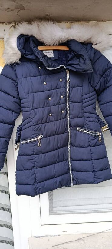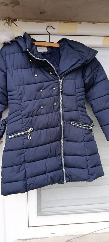 Dečja zimska jakna sa kapuljačom, tamnoplave boje.