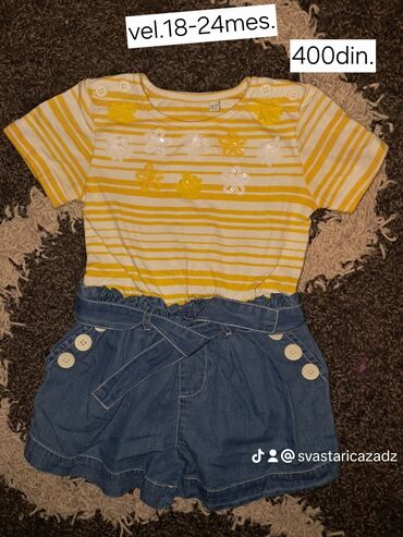 - Gornji deo od teksasa sa sitnim belim cvetićima, dugmad i ukrasna čipka, vezivanje u struku