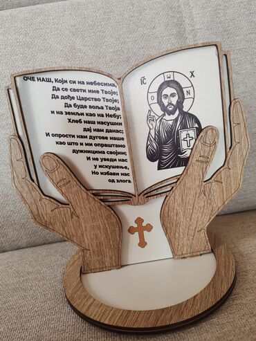 Dekorativna pravoslavna ikona/stojeća dekoracija od drveta sa molitvom Oče naš.