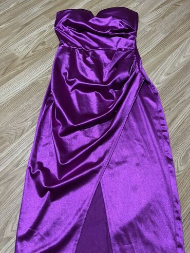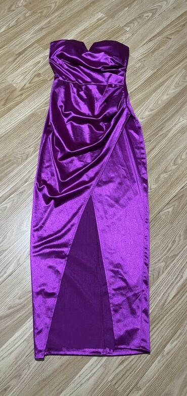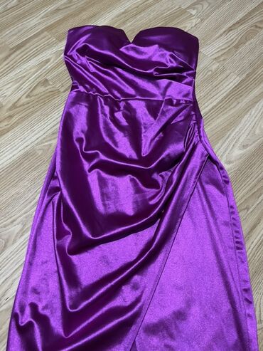 Elegantna večernja haljina – ljubičasta satenska tkanina