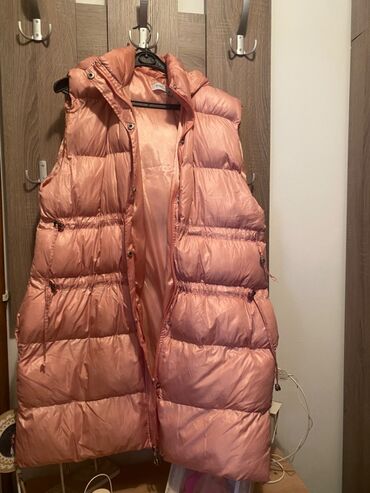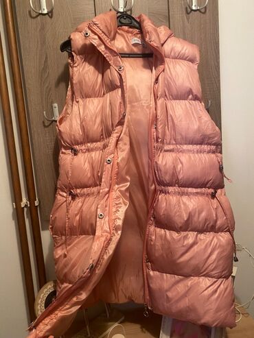 Ženska prošivena prsluk-jakna bez rukava, boja tamna čokolada. - Kroj: struk naglašen pojasom koji se vezuje u mašnu/čvor; blago A silueta. - Materijal: glatka, sjajnija tkanina sa laganim punjenj...