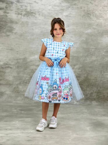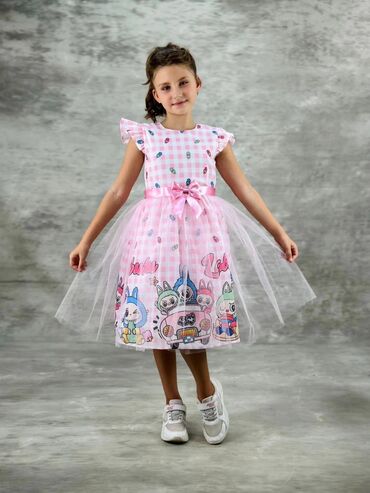 #labubu #labubuhaljine Dečija haljina sa kariranim dezenom i crtanim motivima