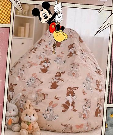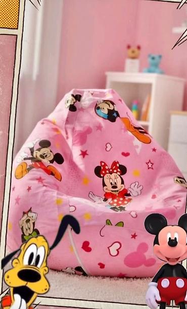 Dimenzije i materijali nisu navedeni na fotografijama; vizuelno odgovara standardnoj dečijoj veličini lazy bag fotelje.