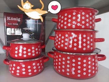 ceo set (svih 5 serpi) po ceni od SAMO 4900 din König KO-5EM – set emajliranih šerpi, crvene boje sa belim tufnama.