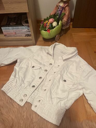 Ženski blejzer – elegantan beli model - Kroj: klasičan strukirani blejzer - Kopčanje: dvoredno sa ukrasnim zlatnim dugmadima (sprijeda i na rukavima) - Revers: širok, klasični - Džepovi: dva predn...7 300 RSD