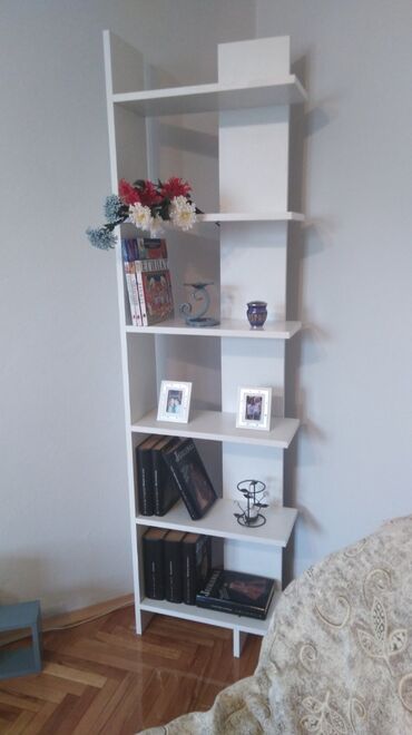 Ugaona polica u beloj boji,dimenzije police je visina 150cm,sirina