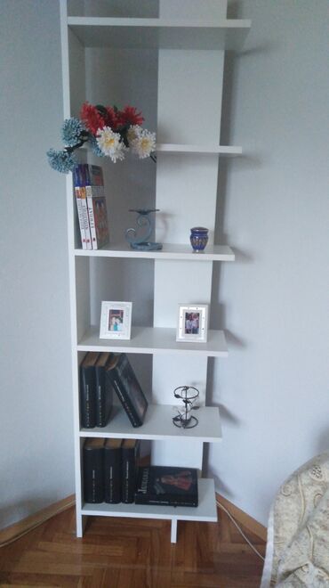 Ugaona polica u beloj boji,dimenzije police je visina 150cm,sirina 50cm,dubina je 20cm.Policu saljem na kucnu adressu brzom postom.