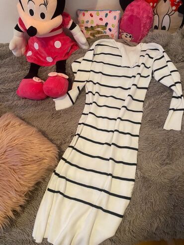 Pletena ženska haljina sa kragnom i kaišem Zara model Haljina 🌸 Vel : ( UNIVERZALNA ) 🔝 - Model: dug rukav, rebrasti (riblja kost) žersej, klasična košulja-kragna - Zakopčavanje: ukrasna traka sa ...