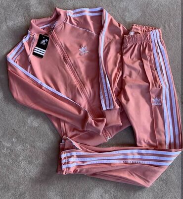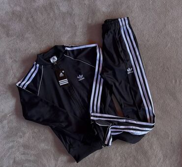 ✅Cena 3200 din Moderna ženska trenerka marke Adidas, idealna za sportske aktivnosti ili opušteno nošenje. Komplet se sastoji od gornjeg dela sa rajsferšlusom i donjeg dela sa elastičnim pojasom. Karakteristične tri bele pruge protežu se duž rukava i nogavica, dok je Adidas logo vidljiv na gornjem i donjem delu. Praktičan i udoban izbor za svakodnevnu upotrebu.