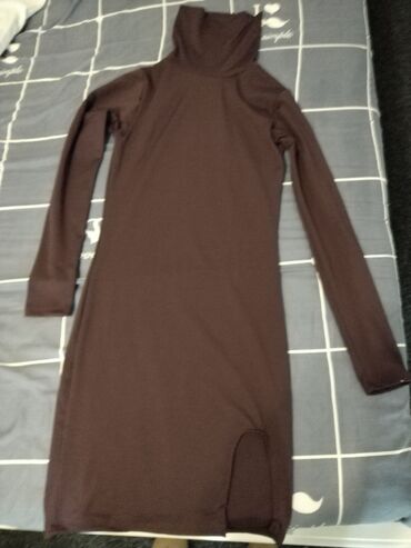 - Model 1: jednobojna, tamno braon, elastična tkanina, visoka rol kragna, diskretan prorez sa strane pri dnu.