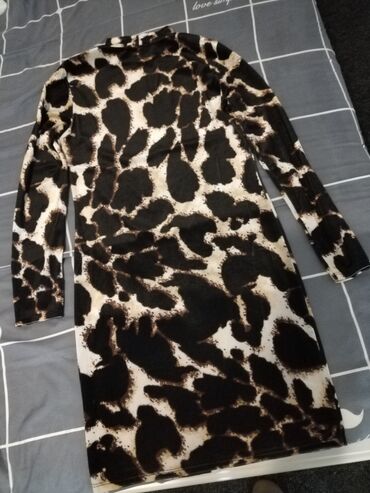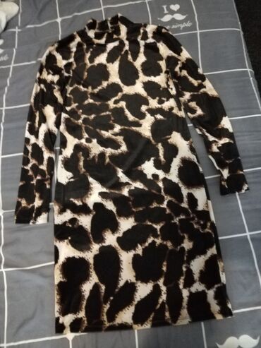 - Model 2: print u stilu animal/leopard, nijanse crne, braon i bež, elastična i meka tkanina, rol kragna, dugi rukavi.