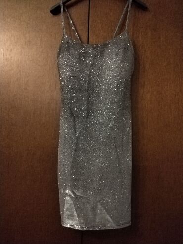 Svečana srebrna haljina sa šljokicama – komplet 2 u 1