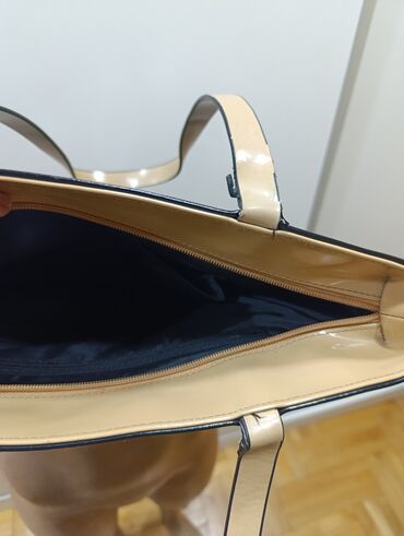 Napomena: prikazane fotografije verno prikazuju realan izgled, uključujući završnu obradu ivica i detalje oko prišivanja ručki. Torba je doneta iz Nemacke, kvalitetna i markirana. Sitna ostecenja na dnu rucki, uslikano.