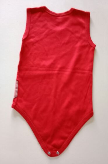 Dečiji bodi/majičica bez rukava za devojčice. Beli model sa šarenim printom “TIME” i sitnim motivima, ružičastim šavovima i ivicama. Jednodelni kroj, uži okrugli izrez i duboki izrez na leđima. Mat...