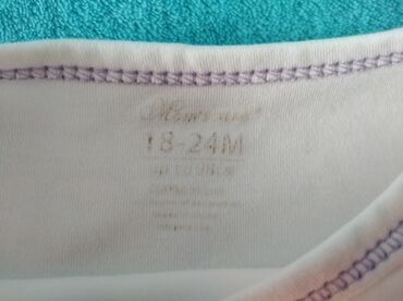 Dečiji bodi/majičica bez rukava za devojčice. Beli model sa šarenim printom “TIME” i sitnim motivima, ružičastim šavovima i ivicama. Jednodelni kroj, uži okrugli izrez i duboki izrez na leđima. Mat...