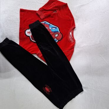 - Boje: crvena majica sa velikim Spiderman printom (plavo-beli detalji), crne pantalone sa crvenim motivom pauka na bedru