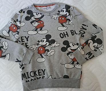 Disney Mickey Mouse dukserica – sivi model sa celoprekrivenim printom lika Mickey Mouse i natpisima (“MICKEY MOUSE”, “OH BOY!”). Klasičan okrugli izrez, dugi rukavi i ranfle na rukavima i donjem rubu. Unutrašnjost mekana, brušena za prijatan osećaj. Original Disney etiketa.