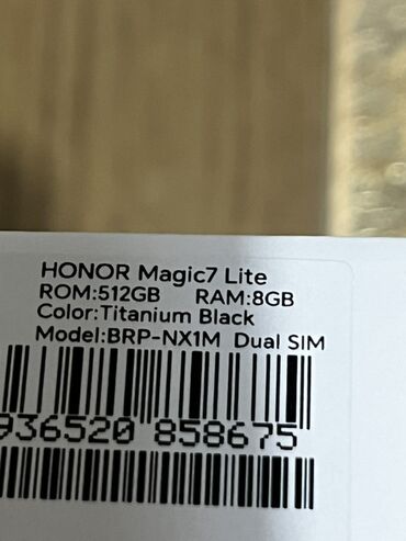 - Telefon HONOR Magic7 Lite 5G (Dual SIM, 8/512 GB) u boji Titanium Black, u originalnom pakovanju sa fabričkim oznakama i serijskim brojem.