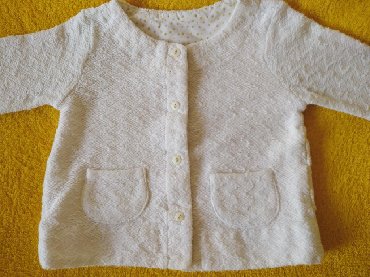 Blejzer na raskopčavanje kao sako za sve kombinacije moze preko majice i preko haljine bele boje sa žutim detaljima