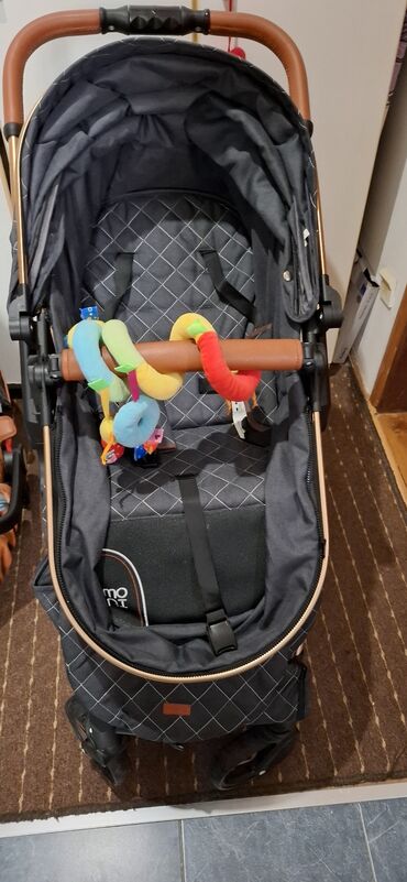 - Rukohtvat i prečka presvučeni eko-kožom; prečka sa mekanom šarenom igračkom.