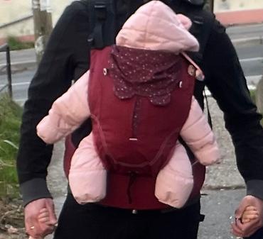 • Beba postavljena na leđa roditelja (6+ meseci)