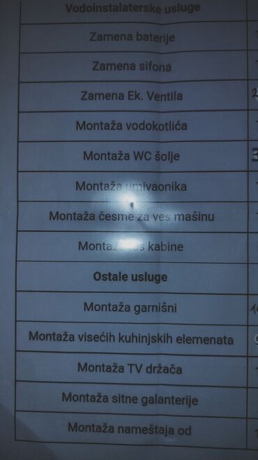 Usluge majstora – vodoinstalaterske, električarske i montažne