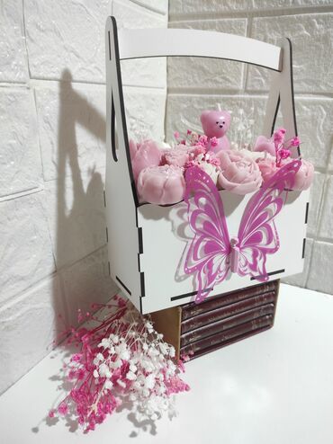 Set svećaDekorativna poklon-korpa sa svećama u obliku cvetova