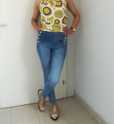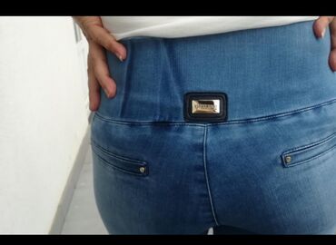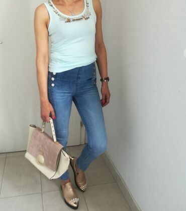 Ženske farmerke ROZA Mls – visok struk, tamnosivi “washed” denim. Model sa jedinstvenim dizajnerskim izrezima na butinama, povezan trakama, ukrašen sitnim metalnim/perlastim nitnama duž ivica. Klas...