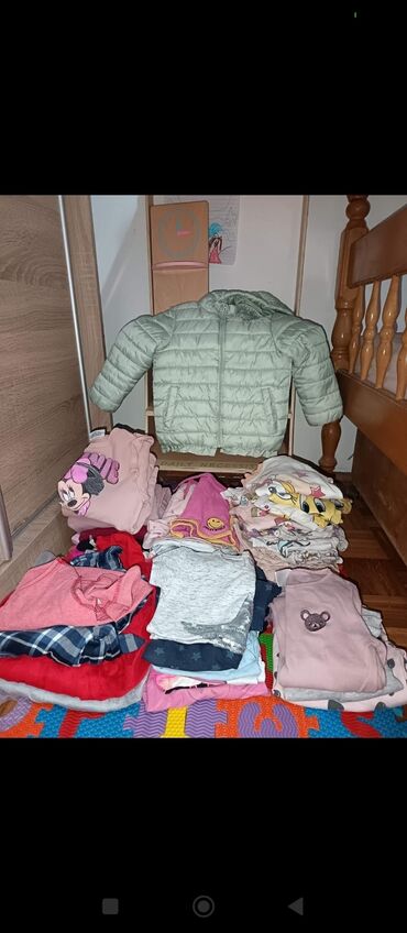 UpotrebljenоGarderoba za devojčice(3-4)2 farmerke 2helanke ,1 donji deo trenerke, 1komplet trenerka, 3 sorca, 5 3/4 helanke, 3 kompleta letnjih, 3kompleta zimskih pidžama, 2 haljine dug rukav, 2 tunike dug rukav, 1 letnja haljina, 7 majica, 2 majice dug rukav, jakna jesen + poklon gumene i zimske čizme